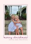 Cards are fully customizable! Please enter holiday phrase, names, return address (if applicable) and color choice in personalization box exactly as you wish for it to be printed (including capitalization and punctuation) as well as any special requests.